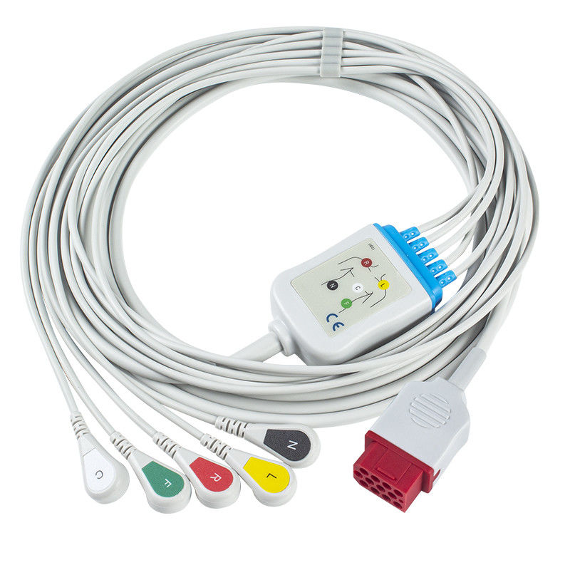 Bionet Nieuwe BM3 BM5 BM7 5 Lood-ECG-kabels en -draad Snap ECG-kabel IEC 12 pin